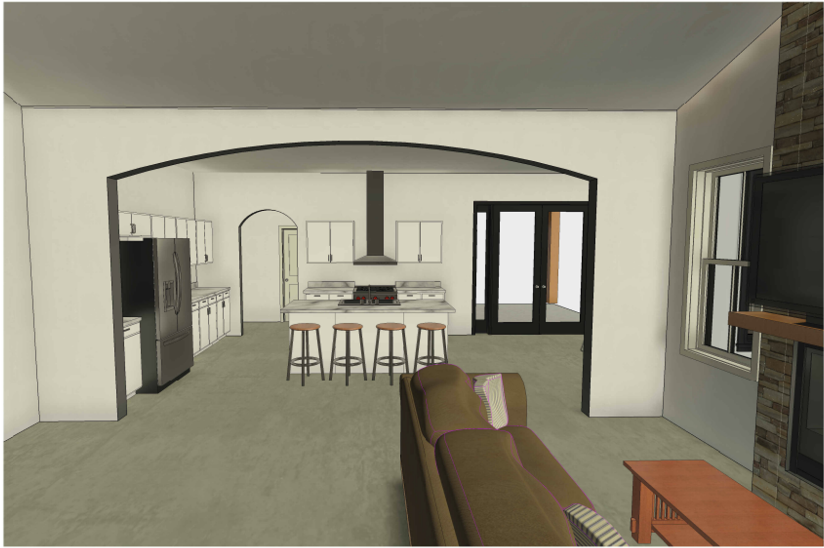 - Arch Opening leading into the Kitchen and Dining Room Area